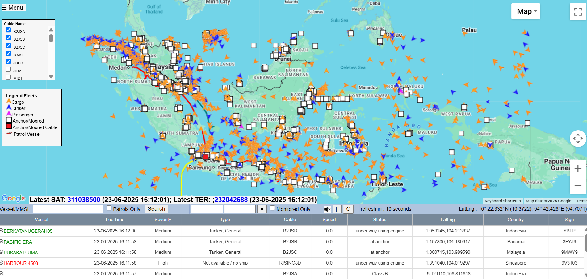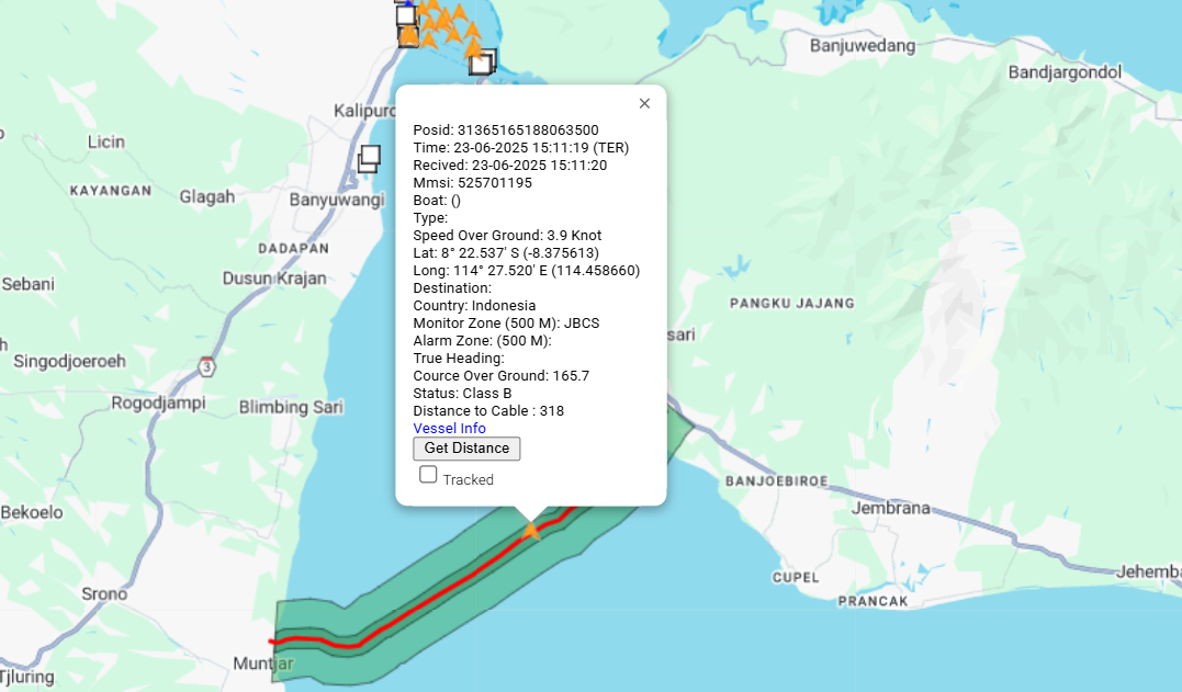 Vessel AIS (Automatic Identification System) based monitoring system for subsea underwater cables and ship/vessel movements in real time.