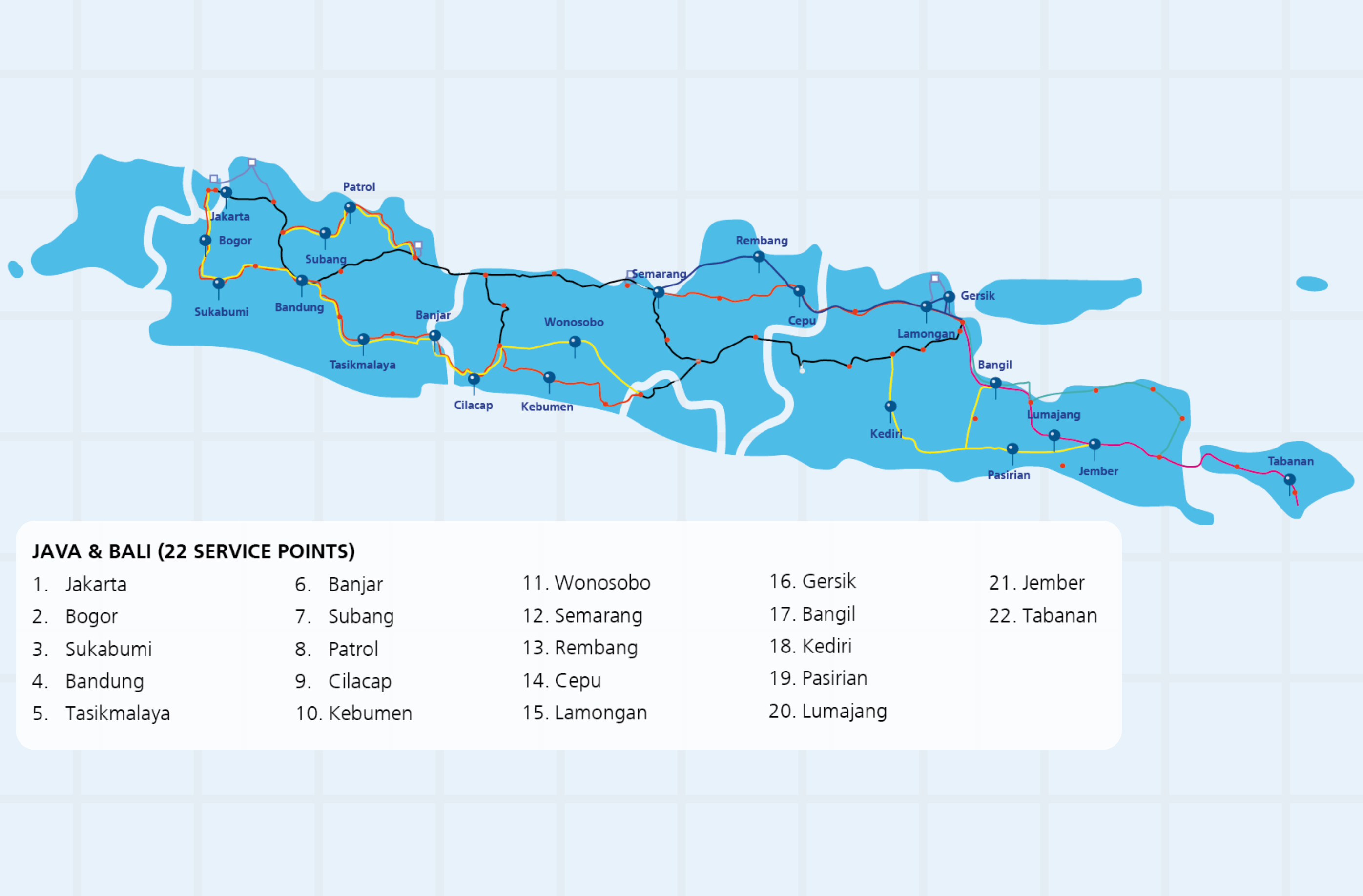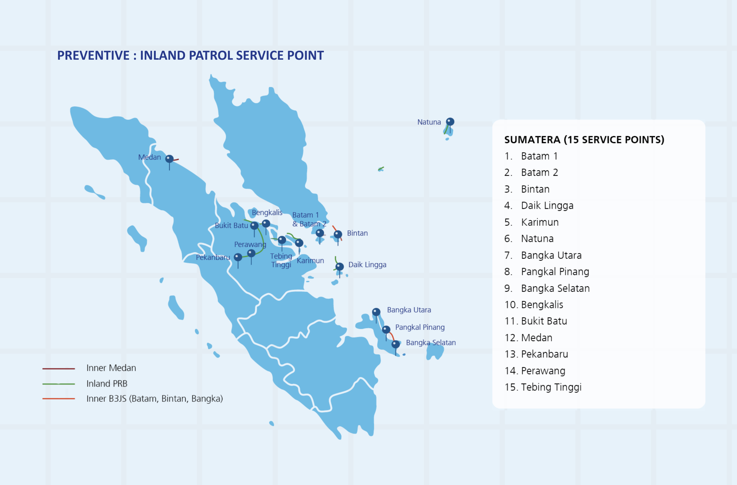 We manage and maintain inland cables through 22 service points in Java and Bali, as well as 15 service points in Sumatra. This maintenance is conducted using a comprehensive approach that includes both preventive measures and repairs. We also collaborate with institutions, agencies, and other relevant parties, such as public works departments, to protect the cables from potential risks related to road development and improvement activities.