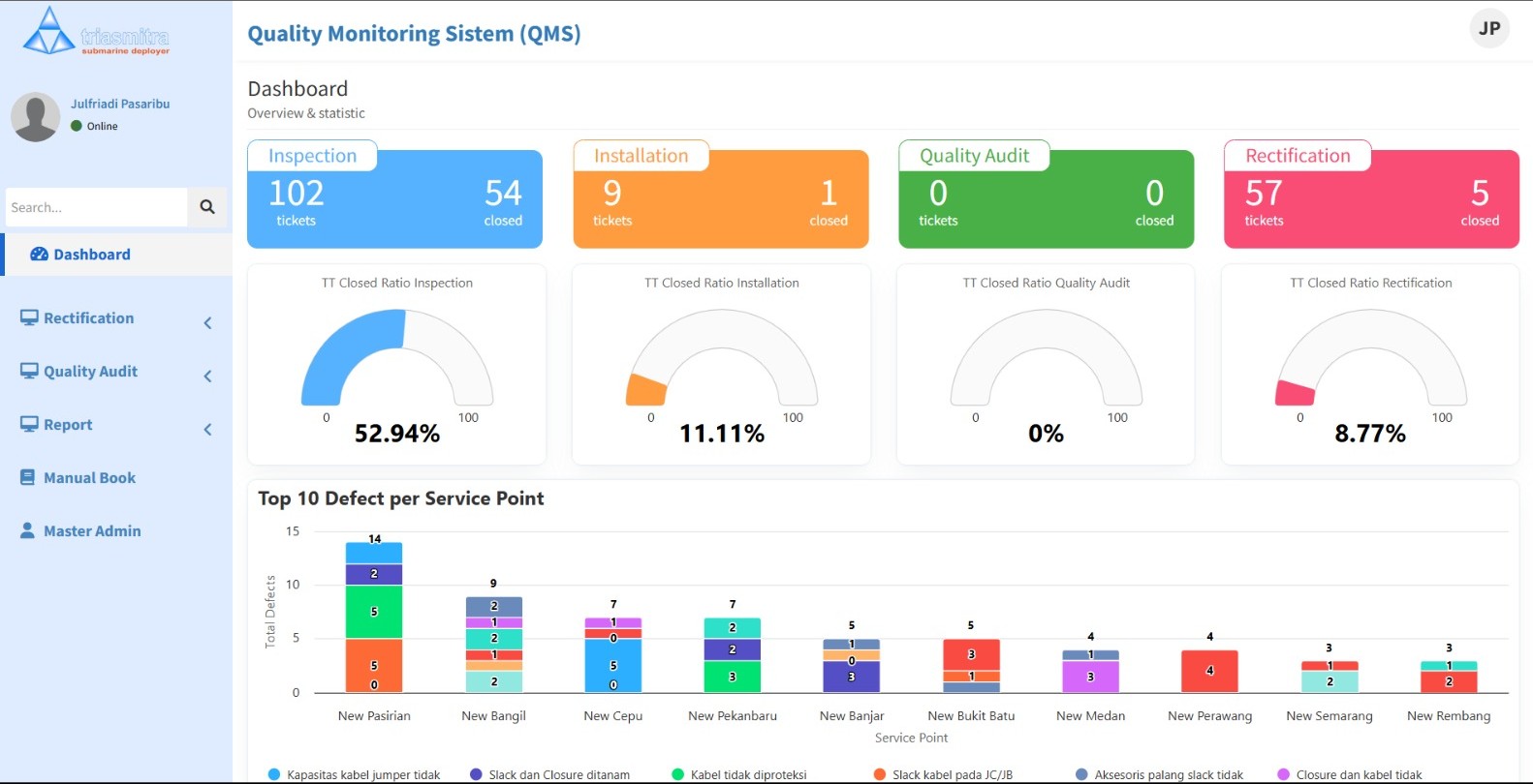 DMS is an integrated system for monitoring our Managed Service team activities both Preventive (inland and marine patrol) and Corrective Maintenance Activities. DMS has function such as Ticketing Management System, Live Activities Monitoring System and Reporting.